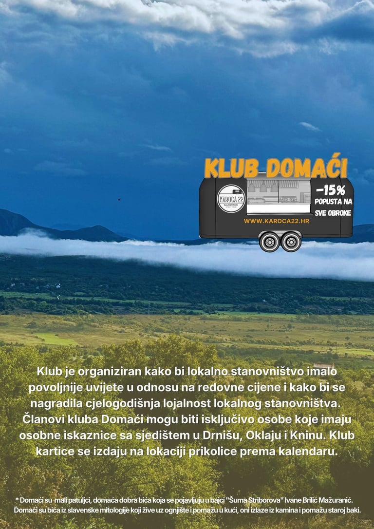 U "Šumi Striborovoj" Ivane Brlić-Mažuranić, Domaći su bila dobra bića koja su brinula o domu i njegovim ljudima. Mi nastavljamo tu tradiciju, brinemo za naše lokalne sugrađane kroz kvalitetnu hranu i povlaštene cijene.